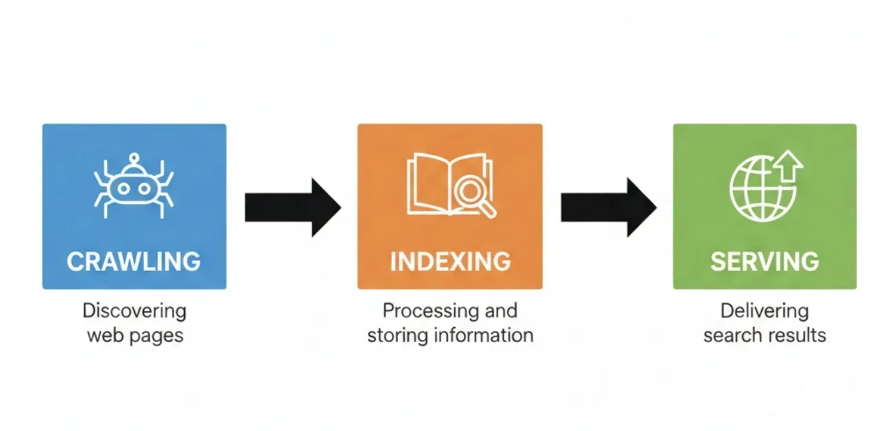 When someone searches, Google pulls relevant pages from the index and ranks them. If your page isn't in the index, it doesn't exist to Google.